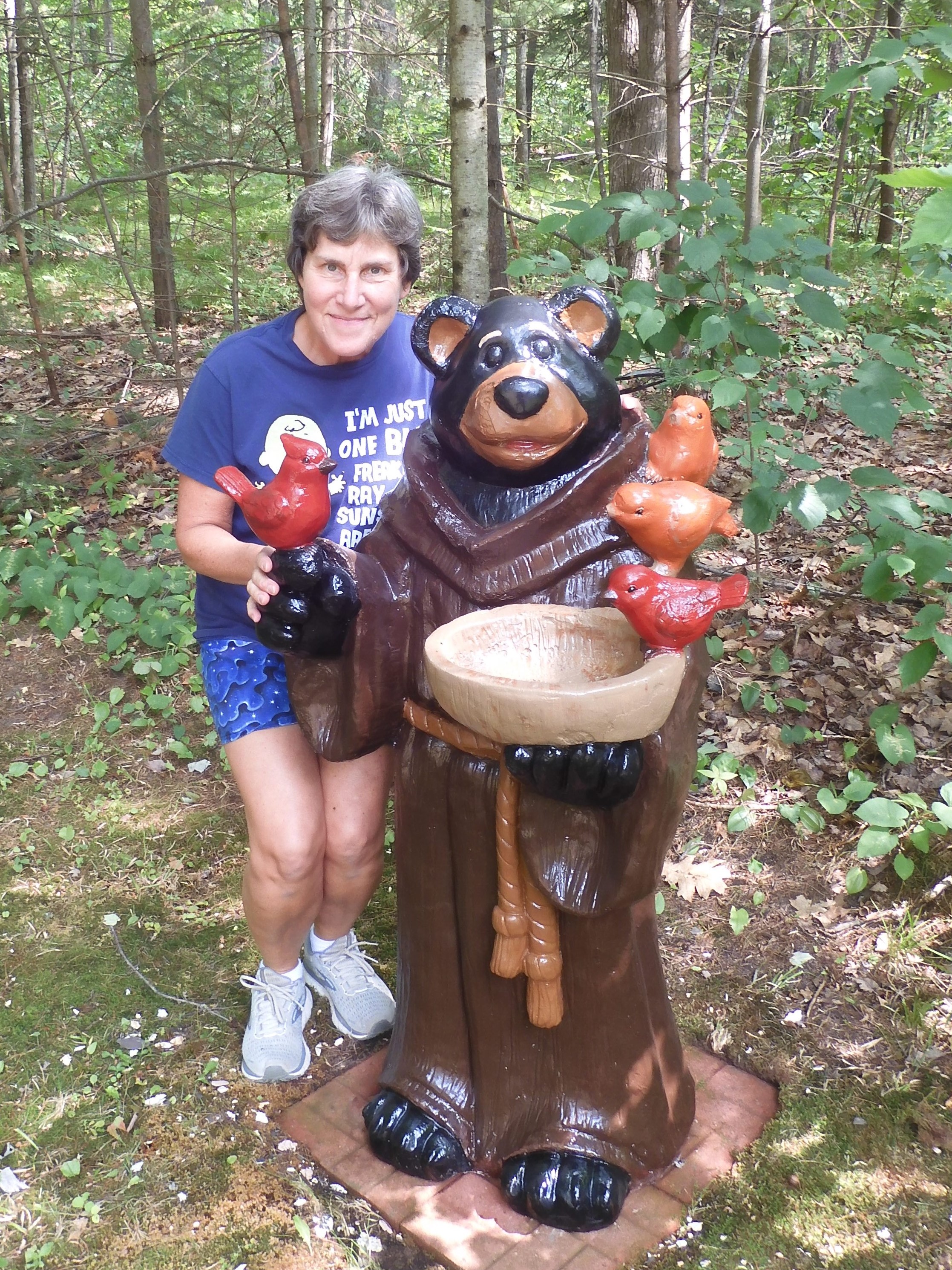 He’d been starting to fade and show his age. And then last fall we didn’t get around to storing him in the garage over the winter. Whatever plaster he is made of does not apparently like the snow.